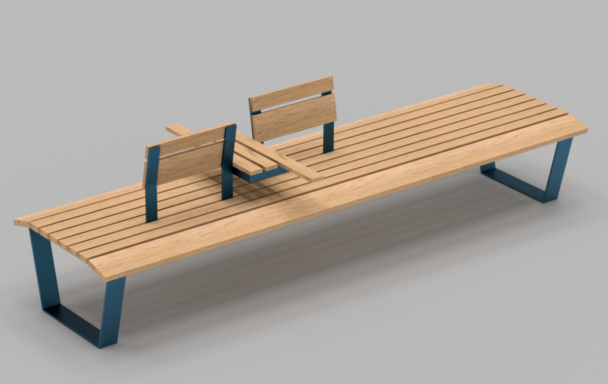 Sie ist in zwei Längen – kurz und lang – erhältlich und kann optional mit einer Rückenlehne und einer Mittelkonsole ausgestattet werden. Die Mittelkonsole dient zugleich als praktische Ablagefläche und als Aufstehhilfe. Rückenlehnen, die sich gegenüberstehen, fördern den Austausch und ermöglichen eine unkomplizierte Kommunikation.