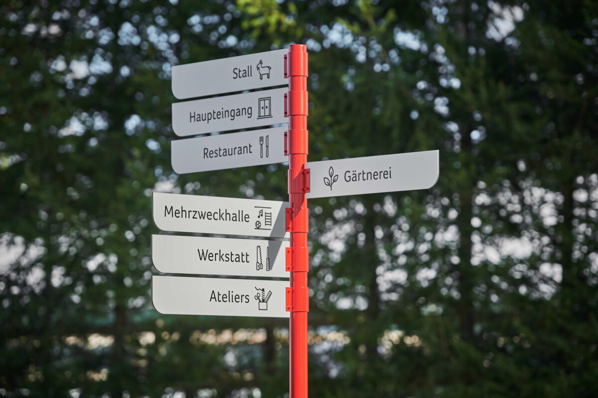 Für die Stiftung Bernaville entwickelt komform inklusive Signaletiklösungen, die Menschen mit kognitiver Beeinträchtigung in ihrer Selbstbestimmung stärken und die Orientierung in Wohn- und Arbeitsumgebungen erleichtern. In enger Zusammenarbeit mit der Stiftung entstehen massgeschneiderte Konzepte, die auf die spezifischen Bedürfnisse der Nutzenden abgestimmt sind. Besonderes Augenmerk liegt auf der Nutzung von Symbolen als zusätzlichem Kommunikationskanal, um eine barrierefreie und intuitive Wegführung zu gewährleisten.
