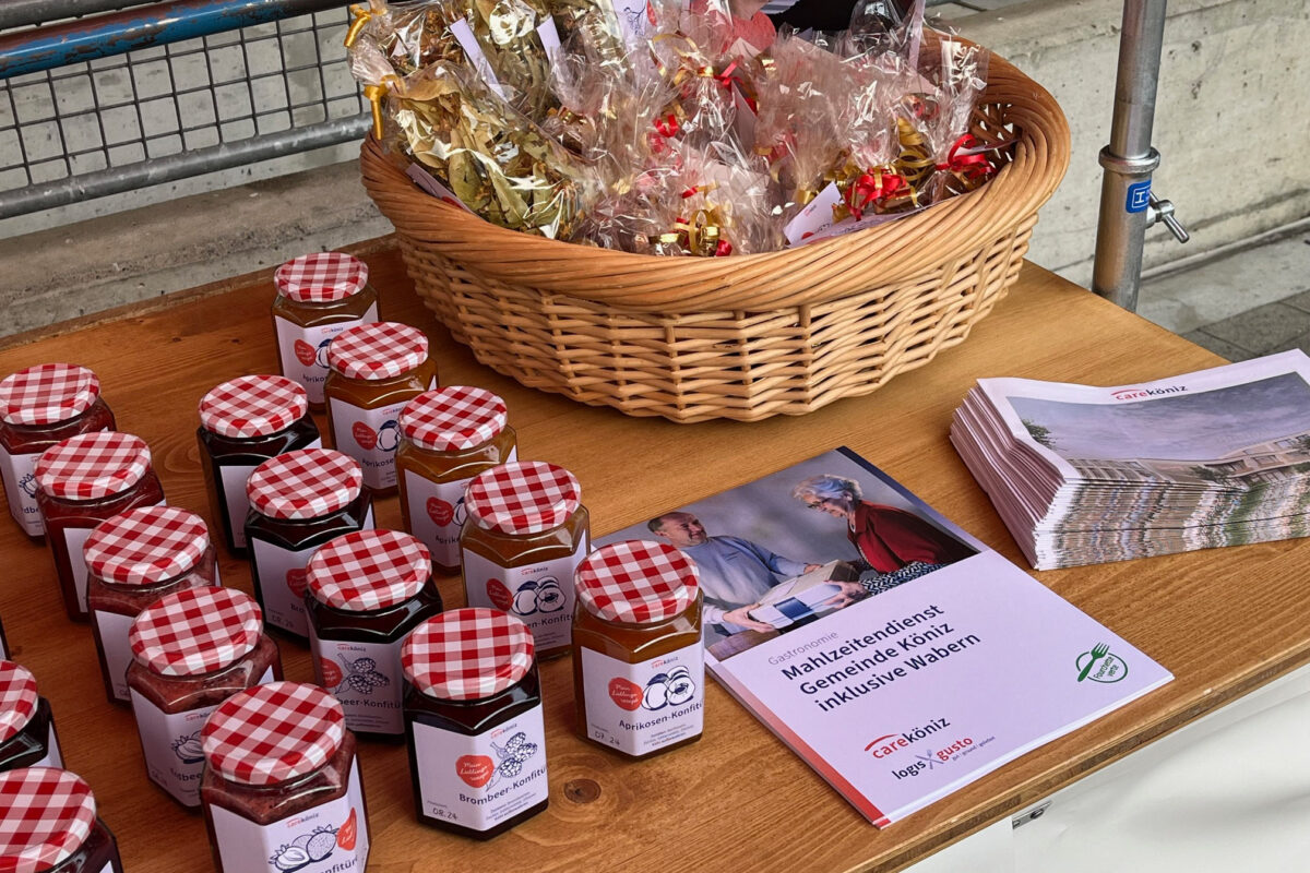 Alterszentren und eine öffentliche Spitex schliessen sich zu einem integrierten Unternehmen zusammen. Um dieses im Einzugsgebiet bekannt zu machen, gestaltet komform einen Marktstand. Der Marktstand wird nicht nur mit Broschüren bestückt, sondern mit Produkten nach Lieblingsrezepten der Bewohnenden des Alterszentrums.